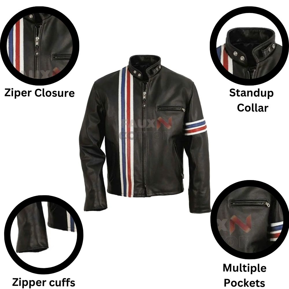 If you have a good costume of a beloved and well-liked star, you can be decent and sophisticated at upcoming events. Consider what we're presenting you right now. Find this swagger-filled Jackass Johnny Knoxville jacket, which may also be your street friend. Try to be a hero on the highways as well. The design of this top wear is a common style for motorcyclists. Having it accessible in your pocket is a blessing because it is a silhouette that may be used in a variety of circumstances. The materials, which work for sturdiness, offer protection, and preserve warmth in cold weather, are high-quality real and artificial leather with interior soft lining. The stripes on the front and sleeves give the outfit its distinctive look. Its striking dark color captivates onlookers. One of the nicest aspects of this top layer is its flawless stitching, which expresses the straight appearance. The front zip fastening and snap tab collar also undoubtedly contribute to this. There is ample room in all three zipped compartments to be utilized for securing personal belongings. Waist buckles are crucial because they guarantee a proper fit when needed.